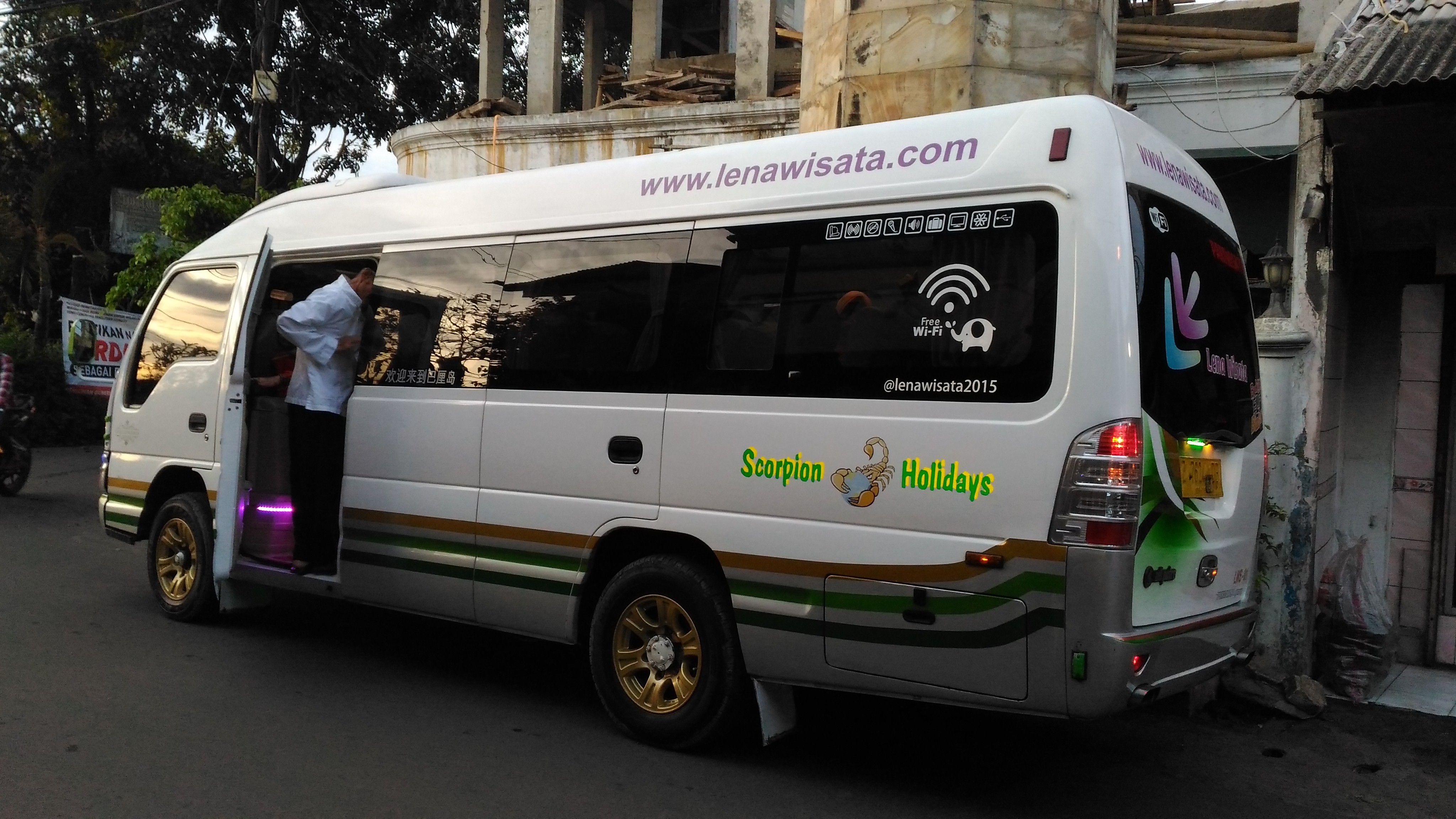 Mengunakan ELF Lenawisata dengan kapasitas 19 orang yang memiliki fasilitas lengkap dan cukup nyaman.