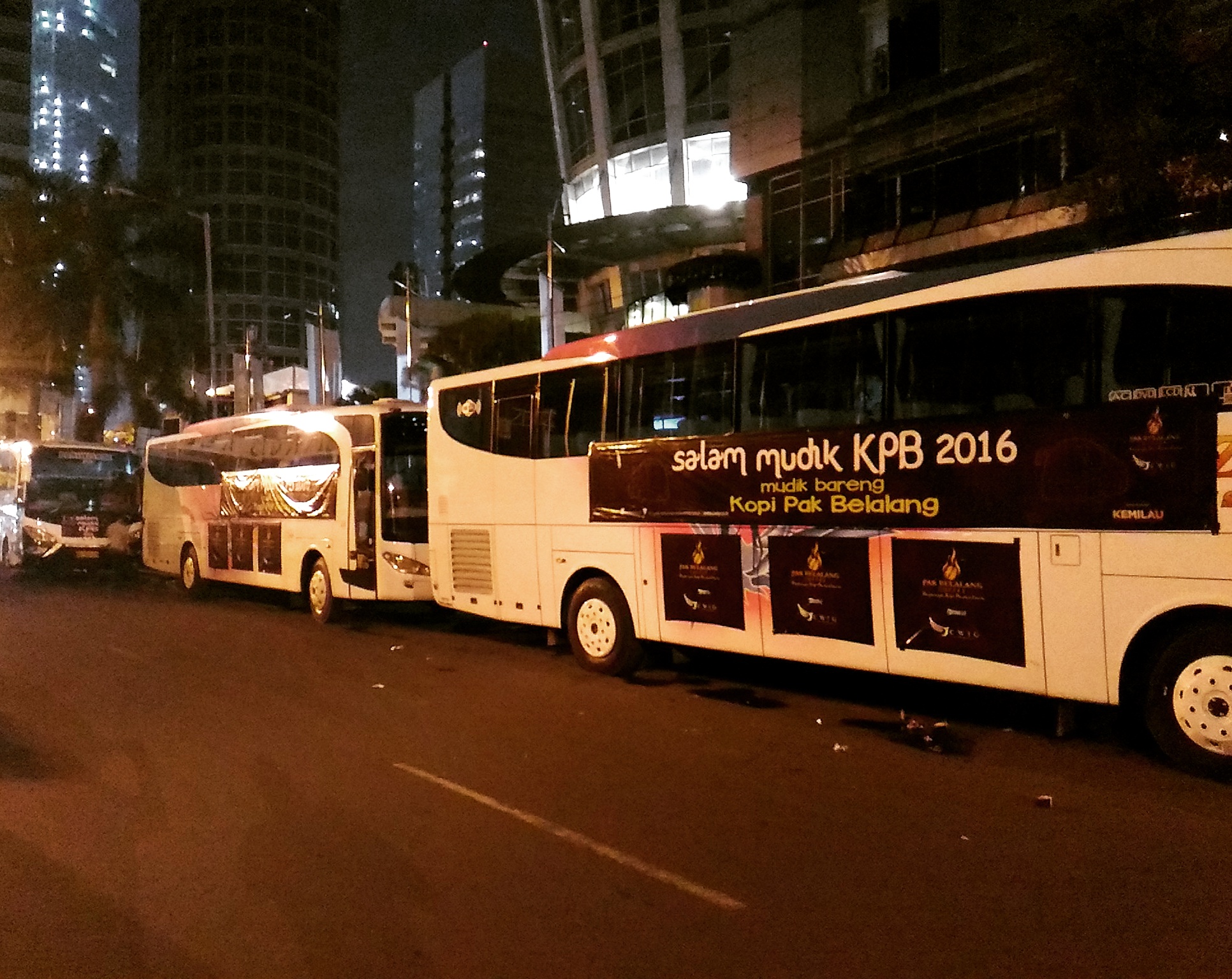 Event mudik bareng Kopi Pak Belalang 2016 kali ini dilayani oleh armada bus dari LEnaWISata