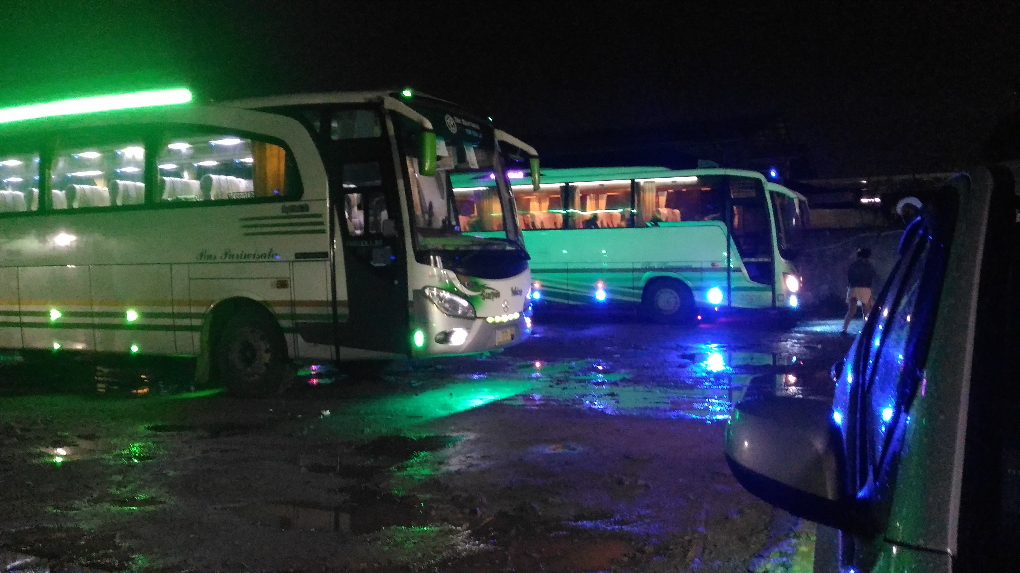 Bus ini dilengkapi fasilitas : AC, LCD, Karaoke, WiFi, bantal dan dispenser.